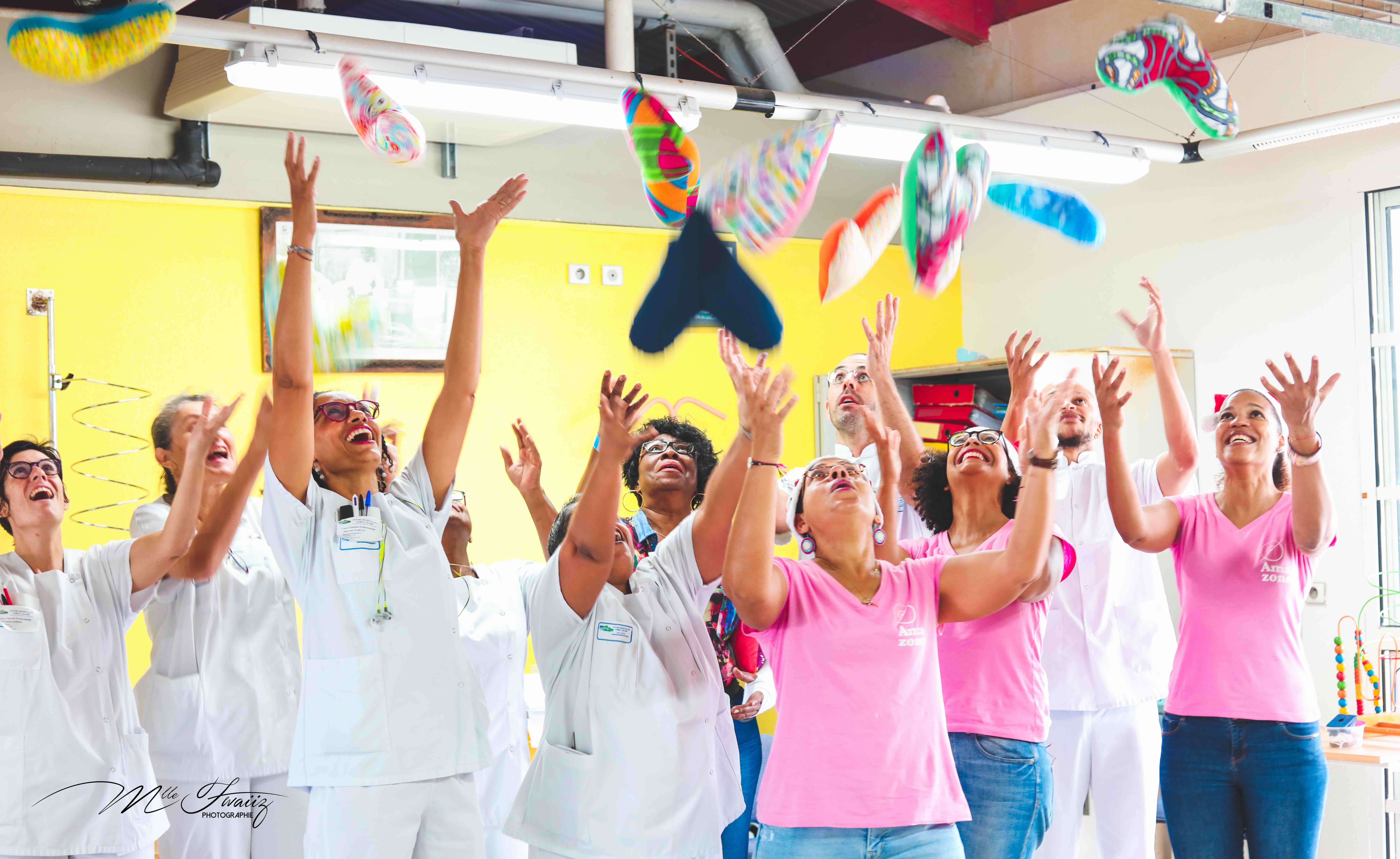 L’idée de l’exposition m’est venue à la lecture d’un article du magazine Rose. Il reprenait des tableaux de maîtres, avec pour modèles des femmes touchées par la maladie. C’était beau, émouvant, iconoclaste et respectueux. Il « suffisait » de lier tout cela, de créer un «balan » (l’élan). Le « balan » a pris. Aujourd’hui, en plus de l’exposition, nous sommes une communauté de patientes et de bénévoles actif.ve.s sur de multiples champs: les soins de support, la prévention, la création et l’amélioration des espaces de soins dans plusieurs territoires dits* d’Outre-Mer. Très rapidement, nous avons senti, en effet, que l’exposition ne suffirait pas: il fallait agir sur le terrain, devenir partie prenante de nos parcours de soins et de vie.